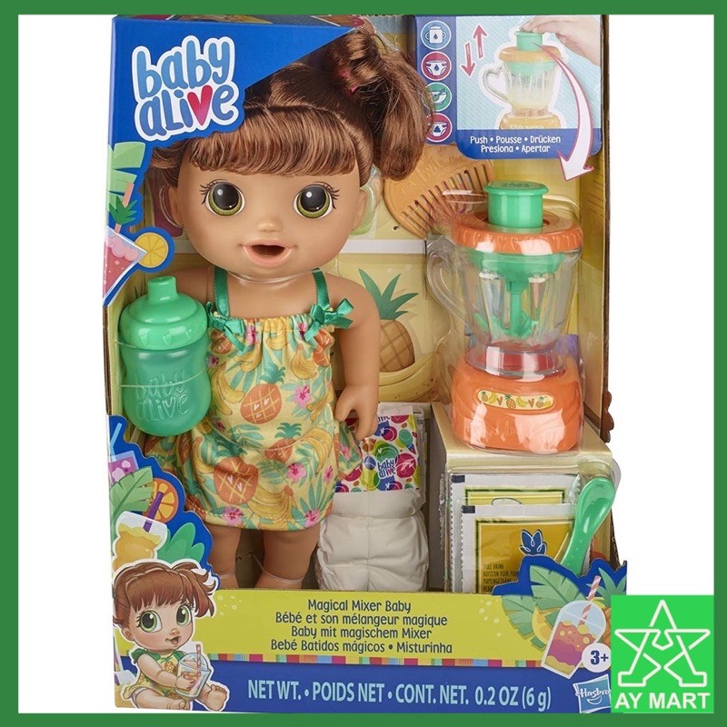 Just open 1 of the 2 included powdered doll food packets additional powdered doll food sold separately pour it in the blender with 3 tsp. Perfectly Cute Folding Crib. Magical Mixer Baby really wets and poops her diaper. Cry Babies Magic Tears Tutti Frutti House. O Melhor em Baby Alive e Bonecos e Bonecas no Mercado Livre. If intended as a gift the packaging may reveal the contents. Whipping up a pink treat for baby is so much FUN with Magical Mixer Baby dolls real working toy blender.
