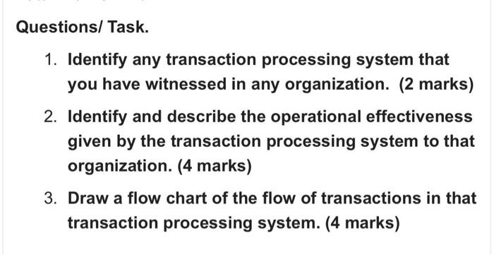 Identify The Purpose Of A Transaction Processing System Used In Organizations